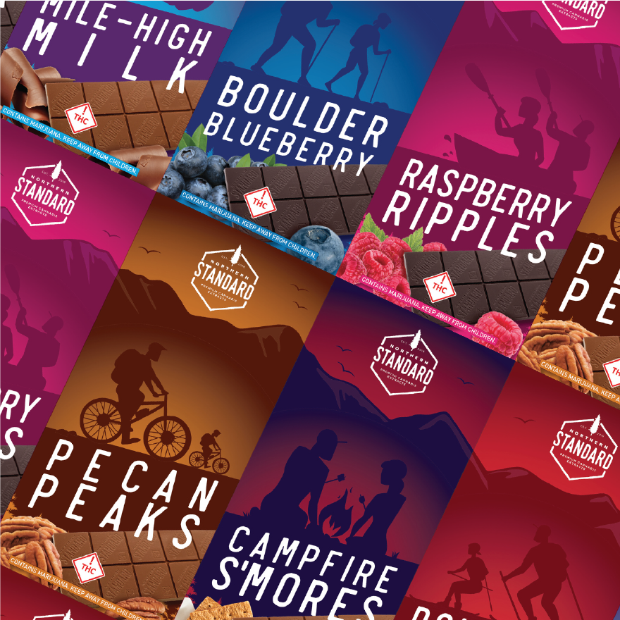 Packaging redesign and print ready artwork for gourmet cannabis edibles, ongoing brand extensions.
